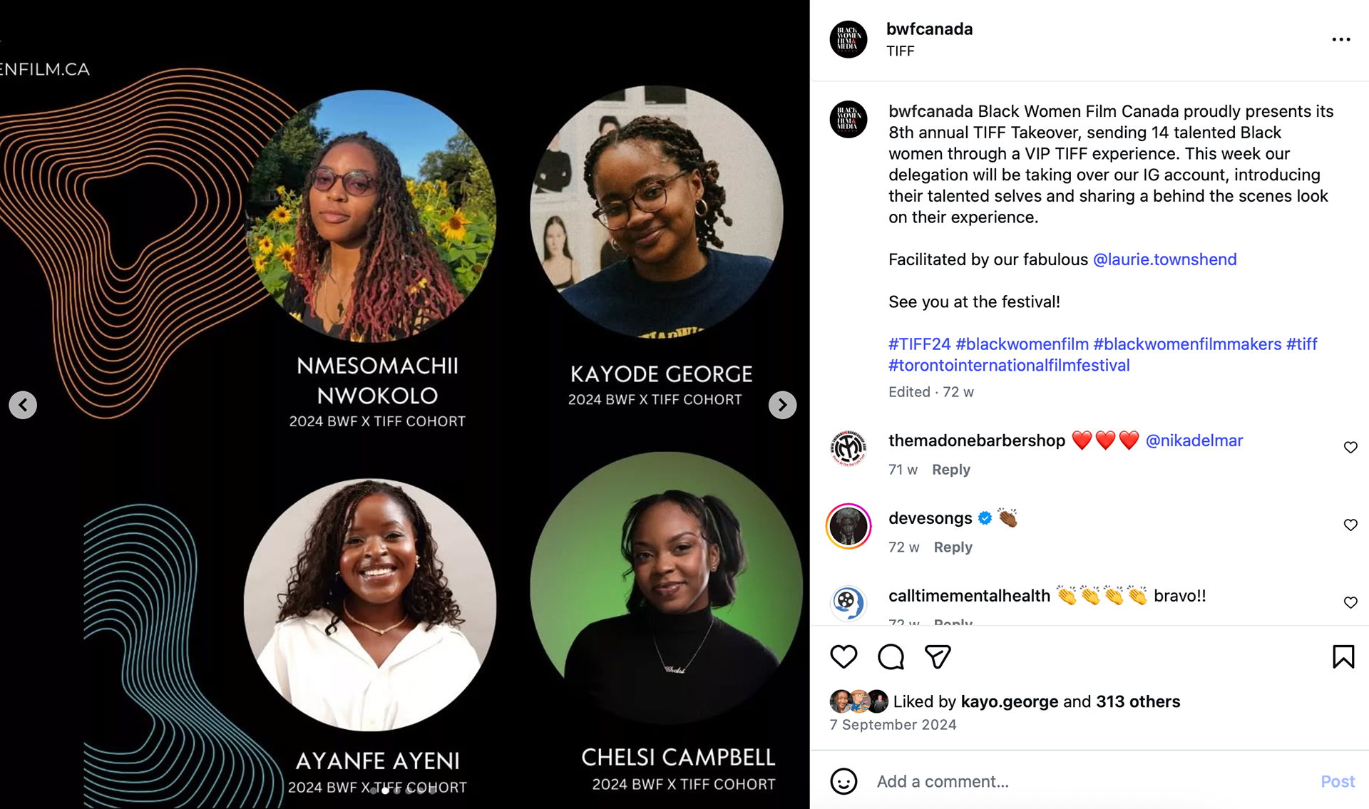 In September 2024, I had the privilege of being selected for Black Women Film's TIFF Takeover Cohort along with various other emerging and experienced filmmakers and media professionals.